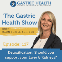 Hello and welcome to the Gastric Health Show. My name is Dawn Boxell, Registered Dietitian, and this week’s topic is detoxification, should you support your liver and kidneys? And I always struggle to talk about detoxification because in conventional healthcare it is so looked down upon and looked through the lens as quack science. And although there are some truths to that, there are some very science evidence-based facts that supporting detoxification for some people is super impactful. So again, I try to present you with evidence-based solutions that you can kind of gauge your health and help navigate through the complexities of your seasons of life. Because as we all realize lies, our bodies don’t maintain in our twenties the same as you are when you’re in your fifties and beyond. So again, as you’re navigating through these seasons of life, understanding just the things you can do to support yourself better is super important for me to deliver to you.