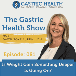 Hello and welcome to the Gastric Health Show. My name is Dawn Boxell. This week we are talking about weight gain and the title.. “Is weight gain evidence something deeper is going on.” And I’m really just wanting you to see that weight gain is a symptom of something deeper going on. Now weight gain has traditionally been thought to be the result of consuming too many calories and not exercising enough.